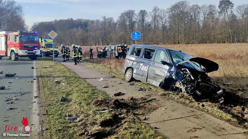 Als die Rettungskräfte von Polizei, Rettungsdienst sowie den Feuerwehren Ebbingen, Hünzingen und Walsrode an der Einsatzstelle ankamen, fanden sie zwei Pkw, einen Volkswagen Kleinbus und einen Volkswagen Caddy, vor welche nach dem Zusammenprall stark beschädigt waren und von der Straße geschleudert waren. Die 42-jährige Fahrerin des Kleinbusses konnte sich selbst aus dem Fahrzeug befreien. Der 64-jährige Fahrer des Caddys wurde von der Feuerwehr aus dem Fahrzeug befreit. Beide kamen nach Untersuchung durch einen Notarzt mit dem Rettungswagen ins Krankenhaus. Im Zuge der Rettungsmaßnahmen war die L161 im Bereich des Unfallortes für den Verkehr gesperrt. Die Polizei hat die Ermittlungen zur Unfallursache aufgenommen.