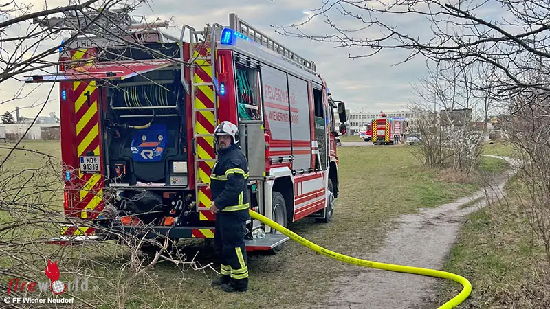 WIENER NEUDORF (NÖ): Zum dritten Einsatz am 21. März 2023 wurde die Freiwillige Feuerwehr Wiener Neudorf kurz vor 17:00 Uhr zu einem Flurbrand am Areal des Figurteiches alarmiert. Die Wiener Neudorfer Feuerwehrmänner rückten mit zwei Hilfeleistungsfahrzeugen und dem Großtanklöschfahrzeug zum Brandeinsatz in die Wilostraße aus.