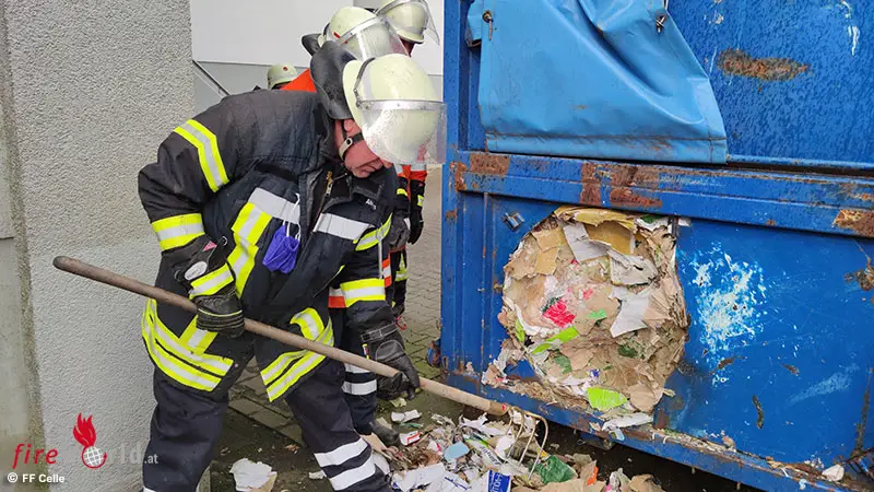 CELLE (DEUTSCHLAND): Am Samstag, 25. März 2023, um 14:24 Uhr wurde die Feuerwehr Altencelle zu einem Lebensmitteldiscounter im Stadtteil Altencelle alarmiert. Hier war es zu einem Schwelbrand in einer Papierpresse und des angeschlossenen Papiercontainers, in den das gepresste Material transportiert wird, gekommen.