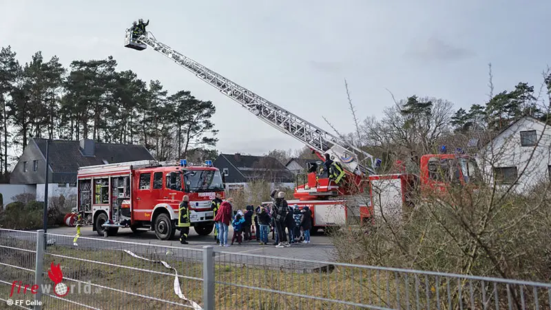 An einem Vormittag besuchte dann die Celler Feuerwehr mit einem Löschfahrzeug und einer Drehleiter die Kindertagesstätte und die rund 65 Kinder tauchten in die Welt der Feuerwehr ein. Altersgerecht wurde das Thema an die zwei Kindergartengruppen und die Krippenkinder vermittelt. Die Begeisterung war den Kindern ins Gesicht geschrieben und auch das Wetter spielte mit. Für alle wohl ein unvergesslicher Tag, den auch das Team der Kindertagesstätte unterstützte. Als Dank sammelten die Eltern für die Feuerwehr, und so manches Kind freut sich schon jetzt auf den nächsten Besuch der Feuerwehr.