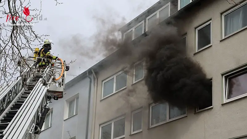 Im zweiten Obergeschoss eines viergeschossigen Mehrfamilienhauses konnten Flammen in einem Fenster erkannt werden. Die Mieter der Brandwohnung, ein 22-Jähriger und eine 18-Jährige, hatten den Brand in der Küche nicht bemerkt und wurden erst durch andere Bewohner und Passanten gewarnt. Nach dem Öffnen der Küchentür drang ihnen dichter Brandrauch entgegen, worauf auch die installierten Rauchmelder auslösten. Durch das umsichtige Verhalten der Nachbarn konnten sie die Wohnung unverletzt verlassen. Der Brandrauch breitete sich schnell in die höhergelegenen Geschosse aus.