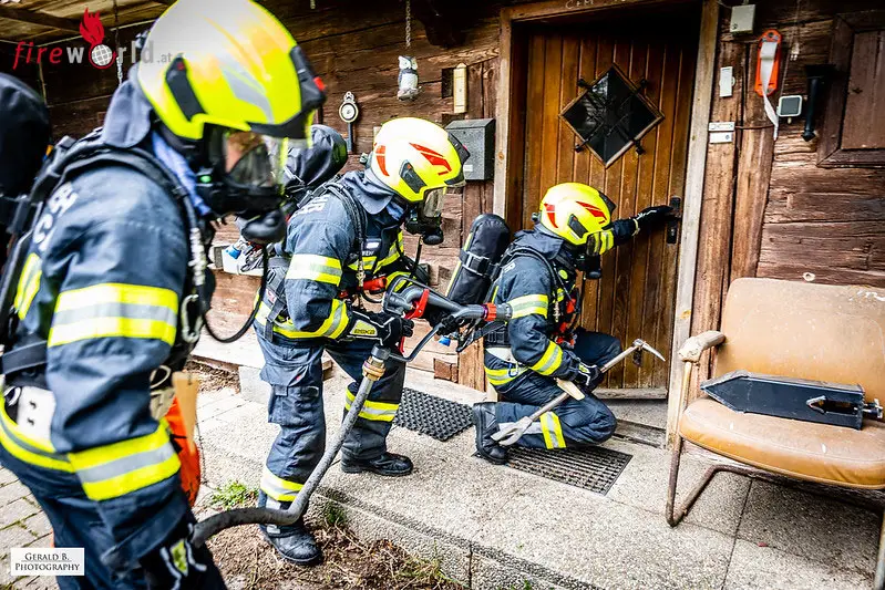 Unter schwerem Atemschutz konnten die Rettungstrupps insgesamt sechs Personen aus dem stark verrauchten und simuliert brennenden Haus retten. Weitere zwei Personen konnten ebenfalls aus einer Zwangslage gerettet werden.