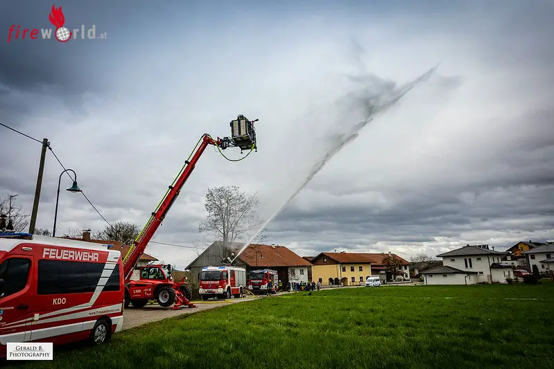 Oö: Wohnhausbrand mit Feuer am Dach in Mauerkirchen beübt