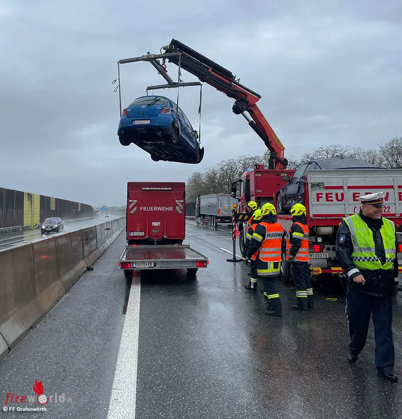 Bei Eintreffen der Feuerwehr Grafenwörth hatten Autobahnpolizei und ASFINAG-Autobahnmeisterei die Unfallstelle bereits abgesichert. Durch die Feuerwehr wurde die Absicherung erweitert und das Wechselladefahrzeug in Position gebracht.