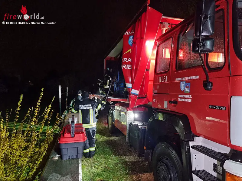Hierfür wurden gegen 01:40 Uhr die örtliche FF Tribuswinkel und zur Unterstützung die FF Oeynhausen über die Feuerwehr Bereichsalarmzentrale Baden alarmiert.