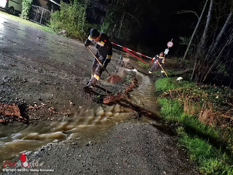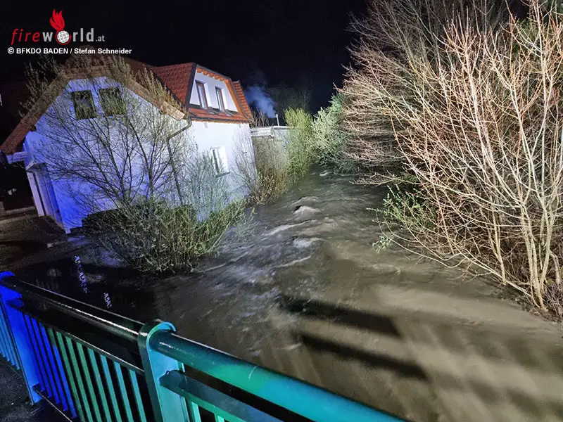 Auch andere Feuerwehren standen in der Nacht im Einsatz. Entweder wegen laufender Kontrollfahrten der Pegelstände oder zu Auspumparbeiten. In Baden wurde die Brücke im Bereich Hotel Sacher/Hauswiese in der Helenenstraße gesperrt. Hier ist wegen aktuell laufender Sanierungsarbeiten an der Brücke ein Gerüst aufgebaut. Im Rosental Siegenfeld Gemeinde Heiligenkreuz floss Wasser aus dem Waldgebiet und füllte Keller einer Wohnsiedlung. In Traiskirchen bei der Schwechat-Brücke beim Bad an der B17 musste die Feuerwehr eine Verklausung lösen.