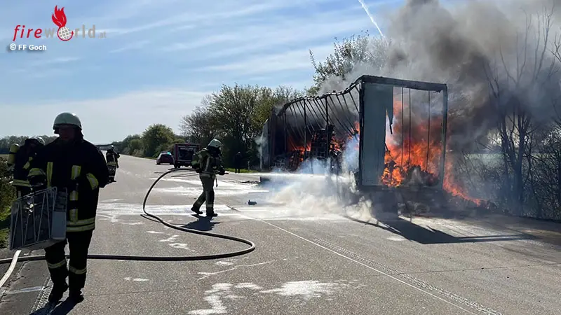 Die Rauchsäule war bereits aus großer Entfernung zu sehen und ließ auf ein größeres Feuer schließen. Daher entschied sich Gochs Feuerwehrchef Stefan Bömler dafür, neben den bereits alarmierten Löscheinheiten aus Hassum, Hommersum und der Wache II auch die Löschgruppe Kessel sowie die Löschzüge Stadtmitte aus Wache I zu alarmieren. Denn eine Löschwasserversorgung auf der Autobahn kann nur durch die Wassertanks der Feuerwehr-Fahrzeuge gewährleistet werden. Bei Eintreffen der ersten Feuerwehr-Kräfte stand der Lkw in Vollbrand.