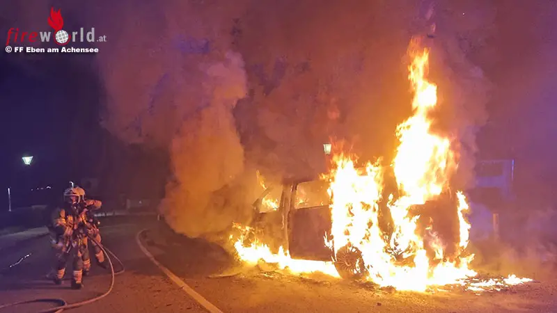 Tirol: In Vollbrand stehendes Fahrzeug nahe Tankstelle in Eben am Achensee