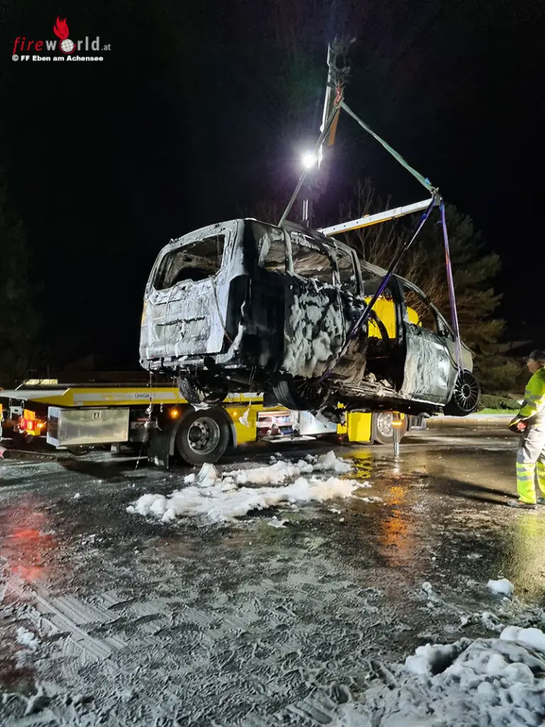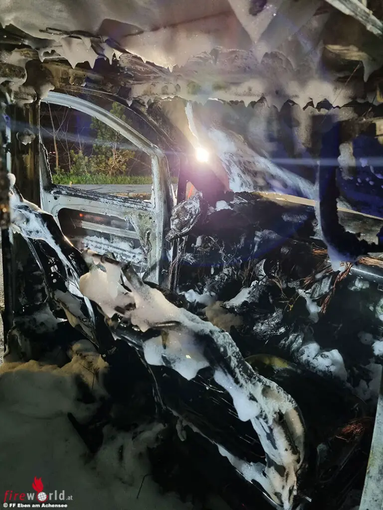 EBEN AM ACHENSEE (TIROL): In der Nacht auf Donnerstag, 27. April 2023, wurden die Mitglieder der FF Eben um 03:15 Uhr unsanft aus dem Schlaf gerissen: „Fahrzeugbrand bei der JET Tankstelle !!“ Weithin sichtbarer Feuerschein ließ nichts Gutes erhoffen.