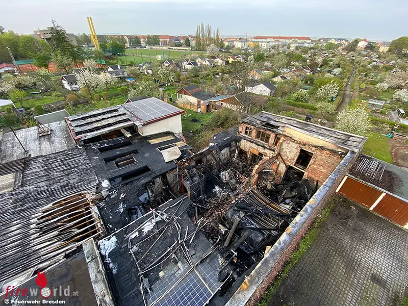 DRESDEN (DEUTSCHLAND): Die Feuerwehr Dresden war seit 19.40 Uhr des 27. April 2023 mit einem Großaufgebot an Einsatzkräften bei einem Großbrand im Einsatz. Aus noch unbekannter Ursache ist in einem Wäschereibetrieb ein Brand ausgebrochen. Die Flammen haben rasch das gesamte Gebäude erfasst und auf den Dachstuhl sowie benachbarte Gebäudeteile übergegriffen.