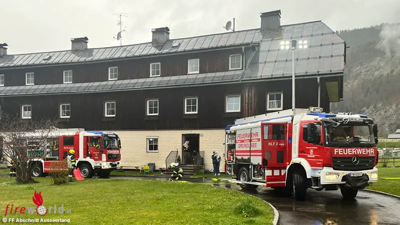 Stmk: Brand- und techn. Aufgaben bei Großübung mit 9 Feuerwehren Gössl in Grundlsee