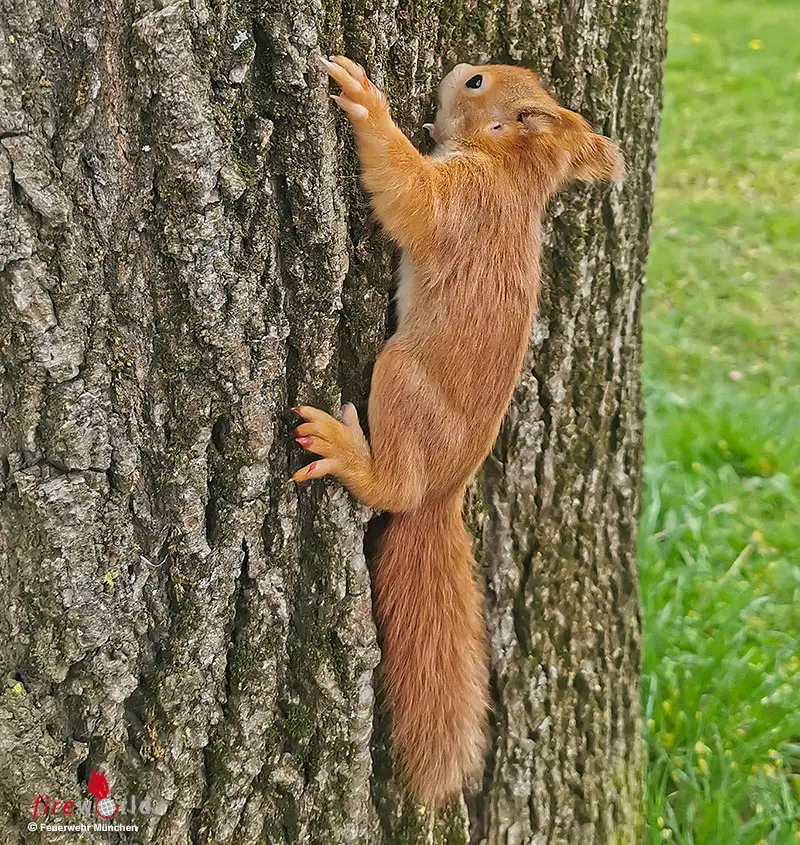 Unmittelbare Hilfe benötigte um 18.57 Uhr ein Eichhörnchen in Laim. Beobachtende in der Maxstadtstraße hatten beobachtet, dass das junge Tier von Raben attackiert und verletzt wurde. Ein Klaf wurde auch zu diesem Einsatz beordert. Die Einsatzkräfte fanden das entkräftete Tier an einem Baumstamm. Ohne jegliche Gegenwehr oder einem Fluchtversuch konnten sie das Eichhörnchen einfangen. Es hatte sichtliche Blessuren an den Vorder- und Hinterläufen.