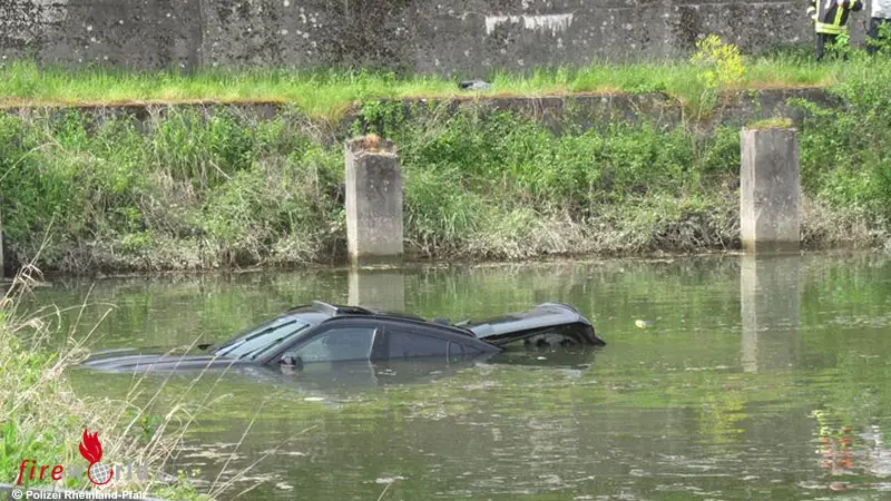 WÖRTH (DEUTSCHLAND): Am Sonntagnachmittag, dem 7. Mai 2023, rutschte in Wörth / Maximiliansau ein Zugfahrzeug samt Trailer und dem noch darauf festgemachten JetSki in das Hafenbecken des Yachthafens Maximiliansau und versank.