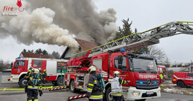 Als die zahlreichen Feuerwehren an der Einsatzstelle eintrafen, stand die Trocknungsanlage bereits in Vollbrand. Umgehend musste ein umfangreicher Löschangriff mit mehreren C-Rohren unter Atemschutz eingeleitet werden. Parallel galt es die Nachbarhalle in Form einer Riegelstellung zu schützen. Gleichzeitig musste eine Wasserversorgung zu mehreren Hydranten in der Umgebung aufgebaut werden. Durch das zügigen Eingreifen und die schnellen Löschmaßnahmen blieb die Nachbarhalle von den Flammen verschont.