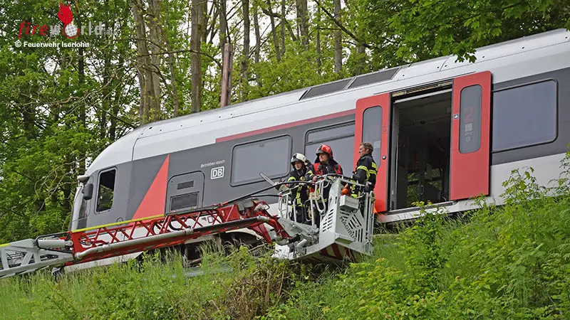D: Baum fällt auf Bahnstrecke in Iserlohn → zwei Drehleitern bei Zugsevakuierung im Einsatz