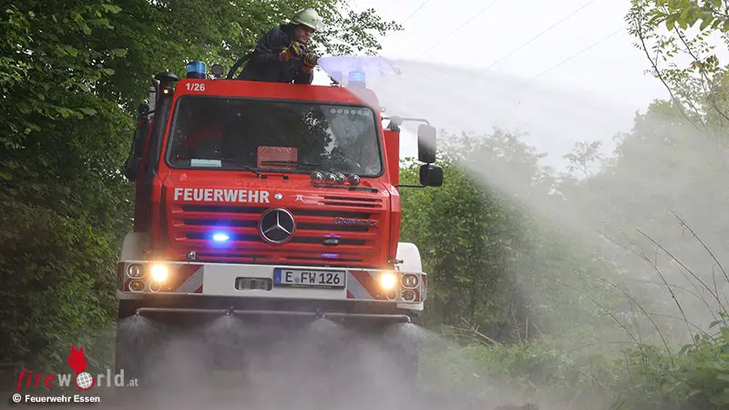 ESSEN (DEUTSCHLAND): Am Samstag, dem 20. Mai 2023, übten neben den Freiwilligen Feuerwehren Essen Burgaltendorf, Byfang, Kettwig, Werden, der Freiwilligen Feuerwehr Hattingen-Niederwenigern, die DLRG Bezirk Essen e.V. sowie der Wasserförderzug aus Euskirchen zusammen mit der Feuerwehr Mechernich die Brandbekämpfung bei einem angenommenen Waldbrand.