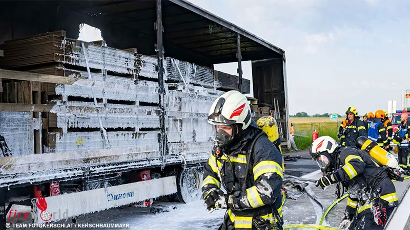 Oö: Lkw-Fahrer halten brennenden Sattelauflieger auf der A1 zwischen Knoten Haid und Allhaming in Schach