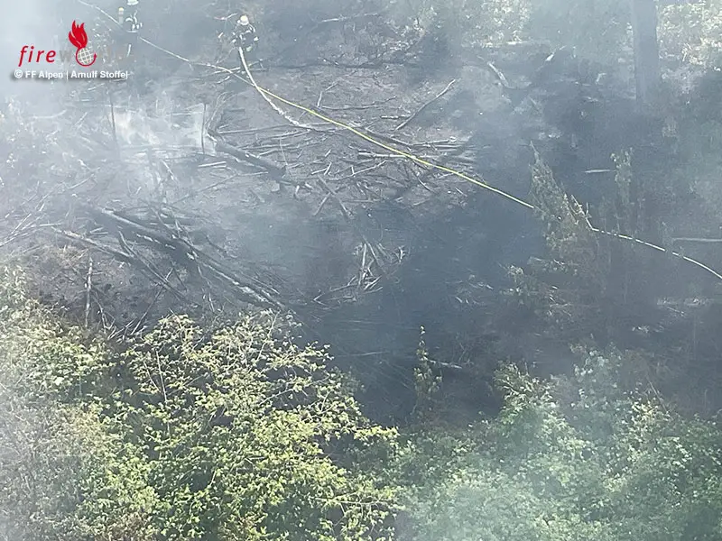 Die Bergung des Lkw wurde durch Einsatzkräfte der Freiwilligen Feuerwehr Alpen begleitet. Ebenfalls wurde noch mehrere Stunden der abgelöschte Bereich der Vegetation begangen.