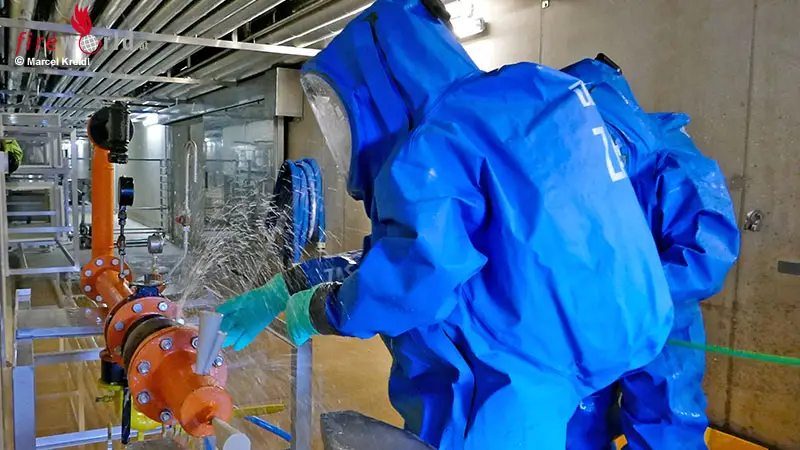 Die Aufgaben des Gefahrgut-Zuges der FF Jenbach waren, herstellen einer stabilen Lage für Umwelt und Sachgüter, dies beinhaltet Auffangen und Abdichten, Umpumpen unter Vollschutzanzügen CSA lll und Aufbau einer Dekontamination – Straße. Insgesamt rüsteten sich 3 Trupps mit CSA lll aus und kamen auch zum Einsatz. Der Chemikalienschutzanzug (CSA) ist ein komplett gasdichter Schutzanzug. Er schützt insbesondere gegen flüssige und gasförmige Chemikalien, darunter trägt die Einsatzkraft – persönliche Schutzausrüstung und ein Atemschutzgerät.