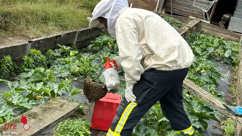 Nö: Feuerwehr fängt Bienenschwarm in Gemüsegarten in Retz ein