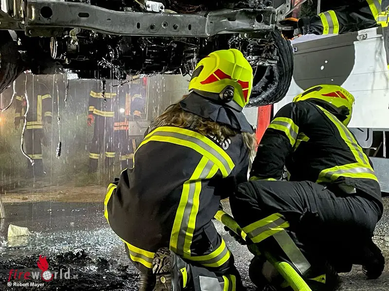 SCHREMS (NÖ): Kurz vor 21:30 Uhr ereignete sich am 13. Juni 2023 auf der LB41 bei Niederschrems ein Wildunfall, bei dem ein Kleintransporter involviert war. Der Fahrer des Fahrzeugs, ein Medikamententransporter, stoppte nach einigen Metern, um den entstandenen Schaden zu begutachten und die Polizei zu benachrichtigen. Bei seinem Ausstieg bemerkte der Fahrer unmittelbar einen Brandgeruch sowie ein Feuer, das im Motorraum entstand.