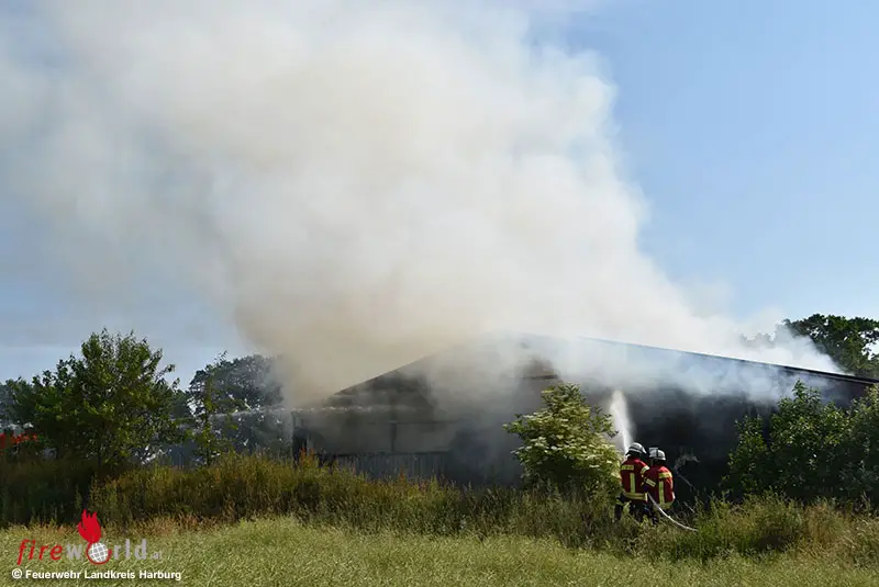 D: Großfeuer einer Maschinenhalle in Tangendorf (Toppenstedt) fordert 14 Feuerwehren