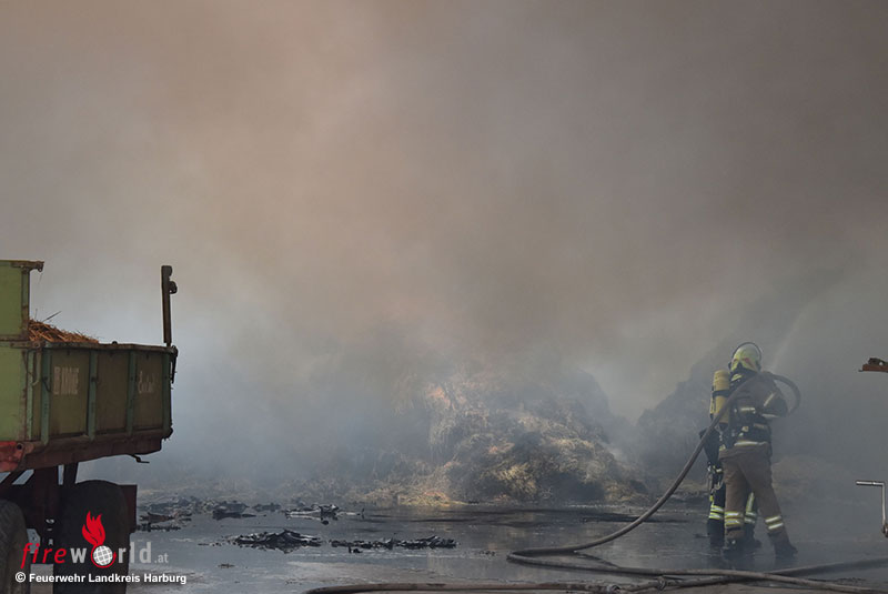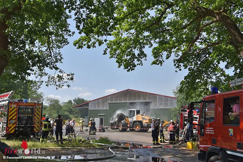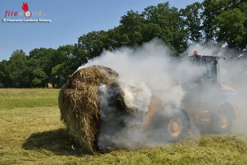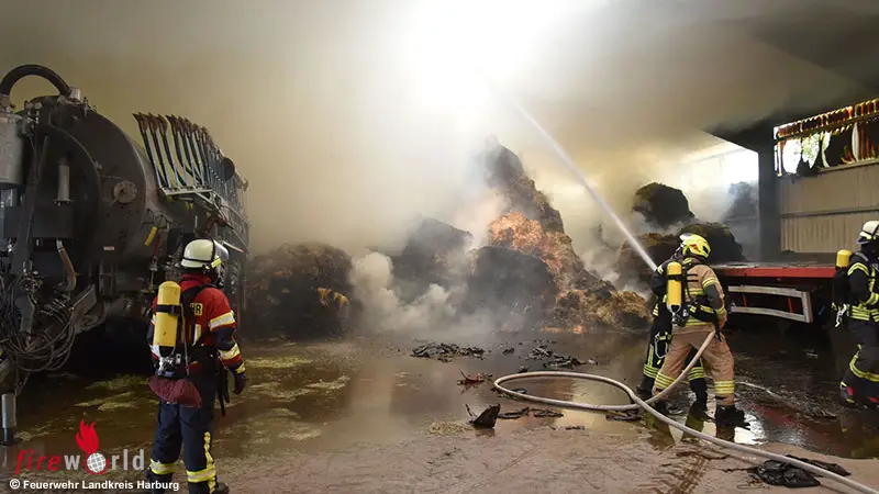Parallel erfolgte die Nachforderung von Radladern und Baggern einer Privatfirma, um die schwelenden Heuballen bergen zu können. Aufgrund des sich abzeichnenden hohen Bedarfs an Atemschutzträgern wurden zudem die Feuerwehren Gödenstorf/Oelstorf, Vierhöfen und Thieshope alarmiert. Von der Feuerwehrtechnischen Zentrale in Hittfeld rückte das Wechselladerfahrzeug mit dem Abrollbehälter Atemschutz zur Einsatzstelle an, sowie die Feuerwehr Hörsten, die hierfür die Besatzung stellt.