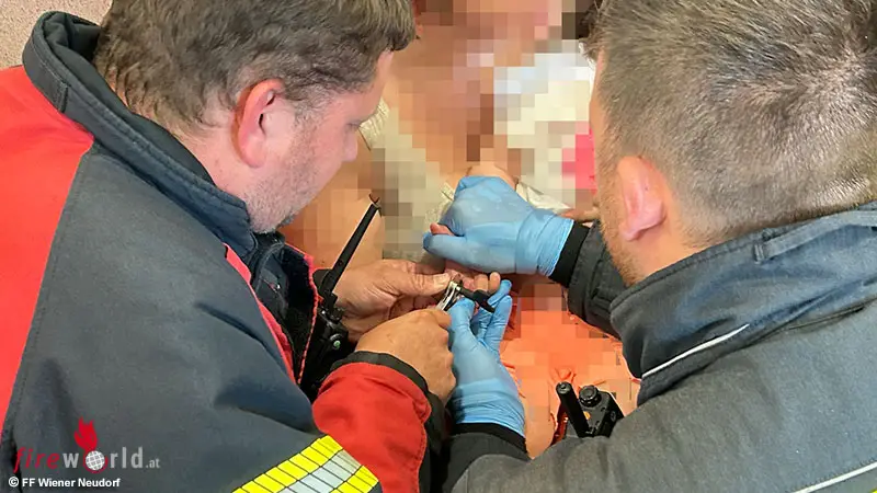 Aufgrund bereits ähnlicher Einsätze in der Vergangenheit verfügt die FF Wiener Neudorf für solche Einsatzstichworte über Spezialwerkzeug im sogenannten „Maschinenunfallkoffer“. Einsatzleiter Martin Billensteiner erklärt: „Nachdem das Kind mit Plüschtieren und Kinderliedern auf dem Handy abgelenkt wurde, konnte der bereits angeschwollene Finger befreit werden.“