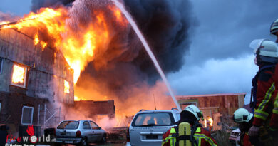 Sofort wurde eine Kontrolle der angrenzenden Gebäude mit einem Trupp durchgeführt. Zeitgleich wurde die Brandbekämpfung mit drei handgeführten Strahlrohren eingeleitet. Durch das schnelle Eingreifen konnte eine weitere Ausbreitung auf die angrenzende Vegetation und den Baumbestand verhindert werden.