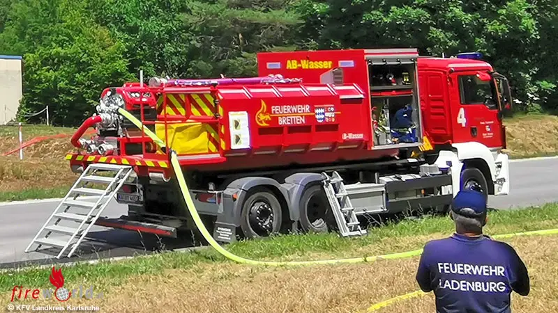 Aus dem Landkreis Karlsruhe machten sich Freitagnachmittag, 23. Juni 2023, ab 15:00 Uhr Fahrzeuge der Feuerwehr Marxzell (1 Mannschaftstransportwagen), der Feuerwehr Rheinstetten (1 Löschgruppenfahrzeug in Katastrophenschutzausführung ), der Feuerwehr Eggenstein-Leopoldshafen (1 Wechselladerfahrzeug mit Abrollbehälter Wasserförderung sowie ein Gerätewagen), der Feuerwehr Karlsbad (1 Gerätewagen Logistik sowie ein Mannschaftstransportwagen ), der Feuerwehr Bretten ( Wechselladerfahrzeug mit dem Abrollbehälter Tank), der Feuerwehr Kronau (1 Einsatzleitwagen mit der Drohneneinheit) und der Feuerwehr Malsch (1 Gerätewagen Logistik) im geschlossenen Verband auf den Weg nach Hardheim/Külsheim.