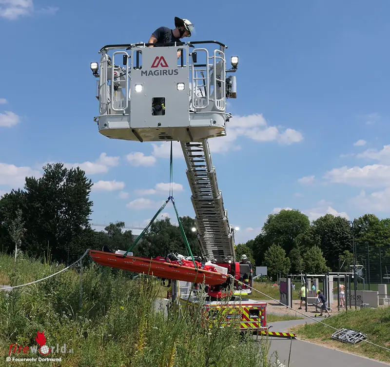 DORTMUND (DEUTSCHLAND): Gegen 12:30 Uhr kam es am 25. Juni 2023 für den Rettungsdienst und in Folge die Feuerwehr in Dortmund zu einem nicht alltäglichen Einsatz. An einem Skatepark in der Sport- und Freizeitanlage an der Kieferstraße ist eine Skateboarderin unglücklich gestürzt und hat sich dabei am Fuß verletzt, so dass sie den Skatepool nicht mehr aus eigener Kraft verlassen konnte.