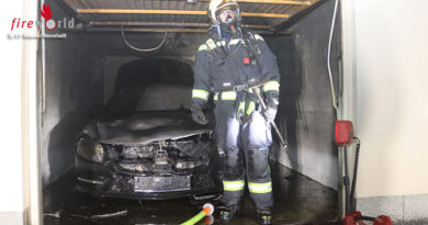Während ein Trupp unter Atemschutz mit einem Strahlrohr zur Brandbekämpfung vorging, suchten weitere Trupps die Wasserentnahmestelle auf. Da sich diese etwa 700 Meter von der Einsatzstelle entfernt befand, wurden zwei Tanklöschfahrzeuge nachgefordert, um einen Pendelbetrieb aufzubauen und eine stabile Wasserversorgung herzustellen. Nachdem dies erfolgreich stattgefunden hatte, wurde ein zweites Strahlrohr vorgenommen und neben Wasser auch Löschschaum eingesetzt. Damit konnte der Brand gelöscht werden.