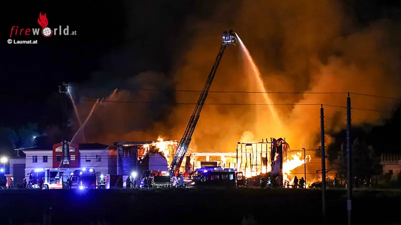 Oö: 23 Feuerwehren bei Gewerbe-Großbrand in Taufkirchen an der Trattnach