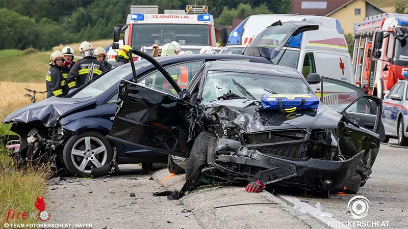 ST. MARTIN IM MÜHLKREIS | FELDKIRCHEN AN DER DONAU (OÖ): Zwischen St. Martin und Landshaag kam es am Samstagnachmittag, 1. Juli 2023, zu einem folgenschweren Verkehrsunfall, bei dem zwei Menschen ihr Leben auf der Straße lassen mussten. Sechs weitere Menschen wurden zum Teil schwer verletzt.