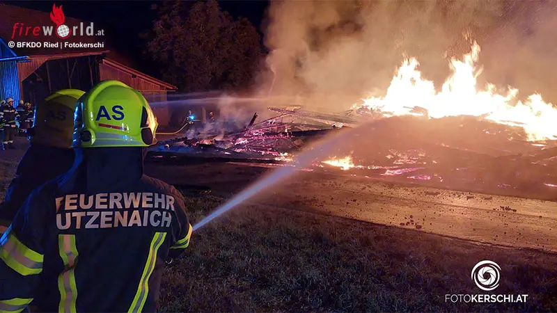 Sieben Feuerwehren standen in der Nacht auf Montag bei einem Brand eines landwirtschaftlichen Stadels in Andrichsfurt (Bezirk Ried im Innkreis) im Einsatz.