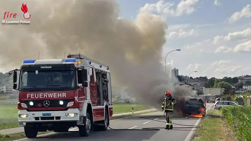 EMMEN (SCHWEIZ): In Emmen hat am Donnerstagnachmittag, dem 6. Juli 2023, ein Auto gebrannt. Die Feuerwehr konnte den Brand rasch löschen. Verletzt wurde niemand.