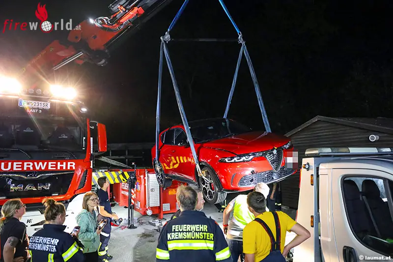 Das Abschleppunternehmen wurde zu einem technischen Gebrechen an einem Pkw mit Hybridantrieb auf die L562 Kremsmünsterer Straße nach Kremsmünster gerufen. Als der Pkw bereits am Abschleppfahrzeug stand, begann dieser zu rauchen und leicht zu brennen. Der beginnende Fahrzeugbrand konnte zwar rasch abgelöscht werden, die Gefahr war dann aber noch lange nicht gebannt.