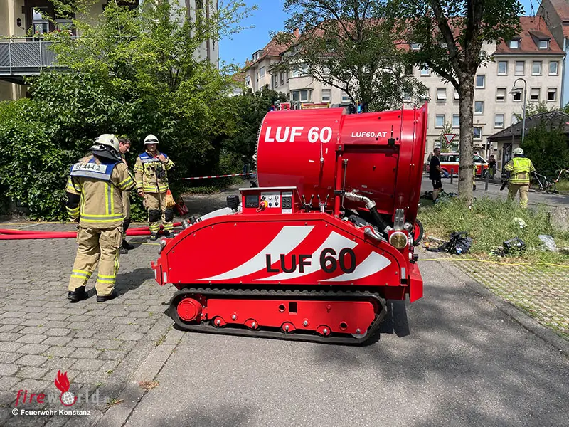 KONSTANZ (DEUTSCHLAND): Am 22. Juli 2023 gegen 10:46 Uhr bemerkten Anwohner des Georg-Elser-Platzes eine Rauchentwicklung aus der dortigen Tiefgarage. Die Einsatzzentrale der Feuerwehr Konstanz alarmierte umgehend die Abteilungen der hauptamtlichen Wache, die Abteilung Petershausen, die Abteilung Altstadt und die Führungsgruppe.