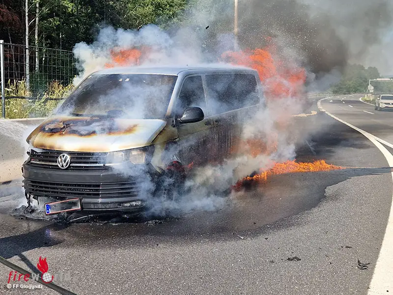 GLOGGNITZ | MARIA SCHUTZ (NÖ): Der erste Alarm für die Feuerwehr Gloggnitz kam um 11:20 Uhr des 23. Juli 2023 – auf der Abfahrt Maria Schutz der Semmeringschnellstraße Fahrtrichtung Bruck an der Mur brannte ein Pkw komplett aus.