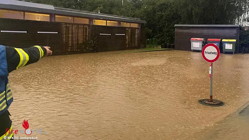 JENNERSDORF (BGLD): Niederschläge von 70-90 lt/m² während der Nachtstunden auf den 4. August 2023 haben die Feuerwehren im Bezirk Jennersdorf auf Trab gehalten. Bereits kurz nach 3 Uhr früh musste dieFeuerwehr Jernnersdorf zum ersten Hochwassereinsatz ausrücken.
