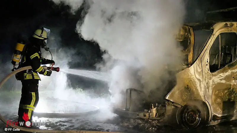 D: Vollbrand eines Kleintransporters auf Parkplatz in Celle