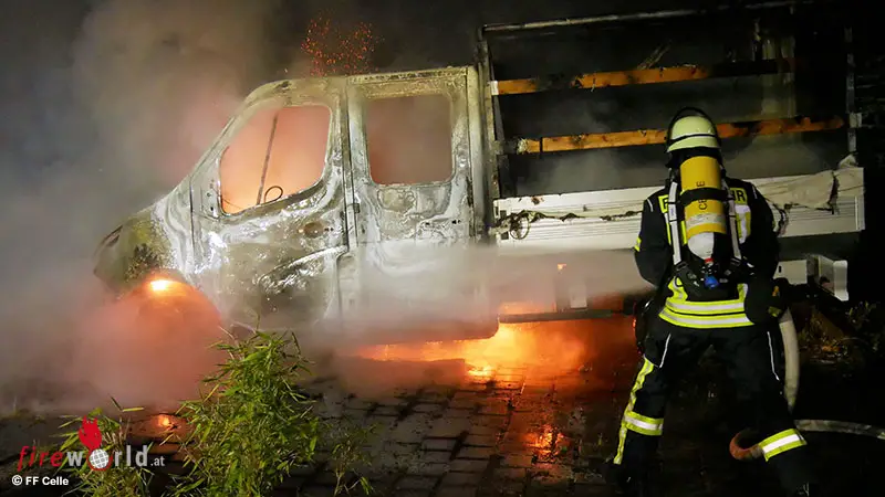 D: Vollbrand eines Kleintransporters auf Parkplatz in Celle