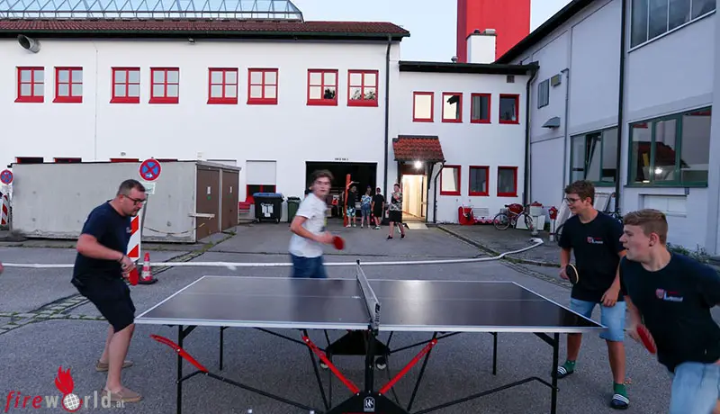 Mit einem gemeinsamen Grillabend, begleitet von Tischtennis- und Fußballmatches sowie Partymusik hatten die Jugendlichen einen entspannten Abend. Um 21:30 Uhr standen dann noch zwei Ausbildungseinheiten auf dem „Schichtplan“. Die Ausbilder aus der Aktiven Mannschaft hatten eine Trainingseinheit zum Ablöschen einer brennenden Person sowie eine Fettbrandexplosion vorbereitet und informierten über die dann notwendigen Handgriffe. „Von der angedachten Nachtruhe konnte man auf Grund der Nervosität wegen eines möglichen Alarms nicht sprechen“, schmunzelt Maximilian Stadler.