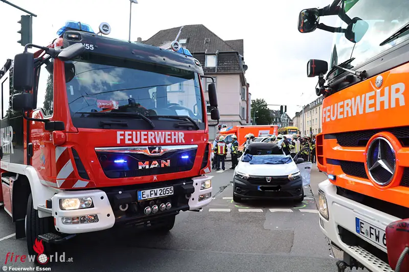 D: Eingeklemmte Person nach Kreuzungsunfall mit Notarzt-Einsatzfahrzeug in Essen