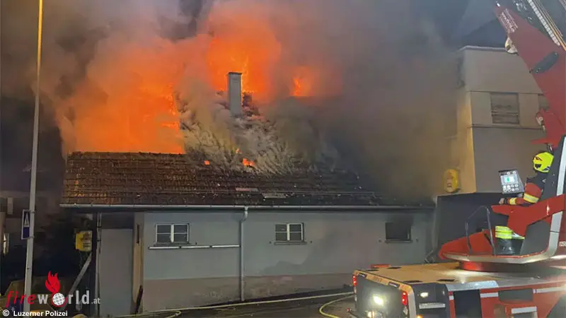 Schweiz: Anbau eines ehemaligen Gasthauses in Udligenswil in Brand