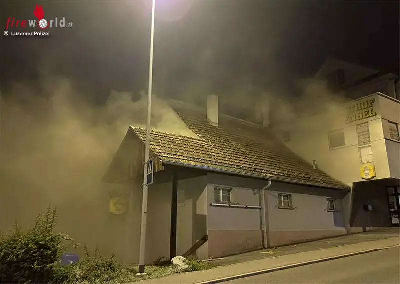 Am Dienstagabend, 8. August 2023, kurz vor 22:00 Uhr wurde der Luzerner Polizei gemeldet, dass in Udligenswil beim ehemaligen Gasthof Engel ein Brand ausgebrochen sei. Beim Eintreffen der ersten Einsatzkräfte drang dichter Rauch aus dem Dachstock des Anbaus. Kurze Zeit später drangen meterhohe Flammen aus dem Gebäude.
