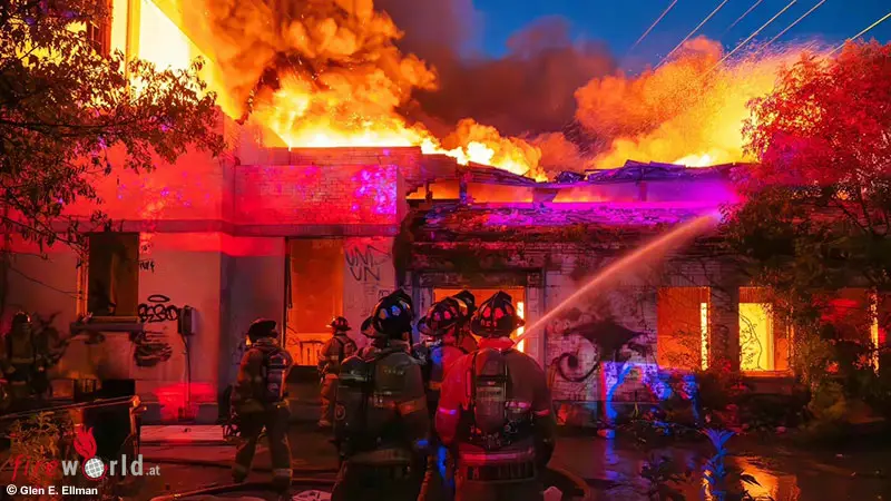 Als die Feuerwehrleute von Fort Worth an diesem bereits vertrauten Ort eintrafen, trafen sie auf intensives Feuer aus dem Ostflügel des Gebäudes. Das Gebäude, eine verlassene Schule, ist den Feuerwehr-Crews in den umliegenden Stationen schon gut bekannt. Deshalb suchte die Feuerwehr umgehend das heruntergekommene Gebäude nach eventuell Eingeschlossenen ab.