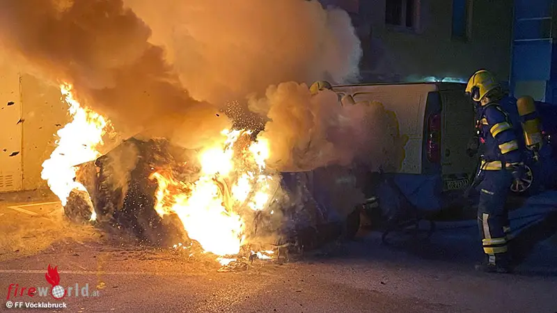 VÖCKLABRUCK (OÖ): Die Feuerwehr Vöcklabruck wurde in der Nacht auf Freitag, 11. August 2023, zu einem in Vollbrand geratenen Pkw in die Parkstraße alarmiert.