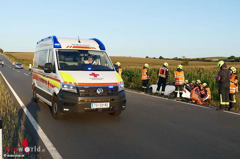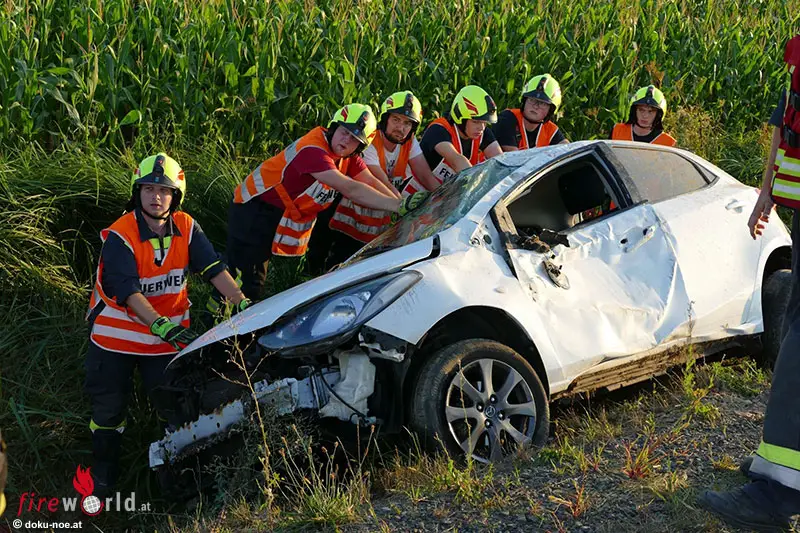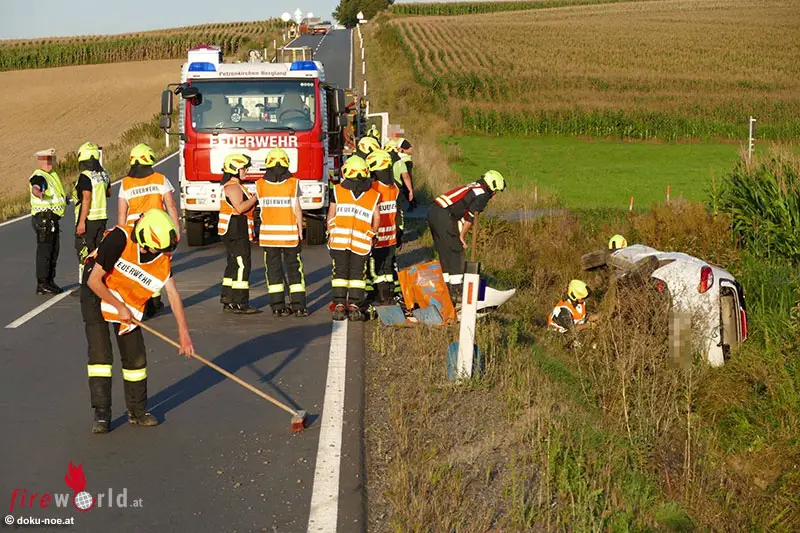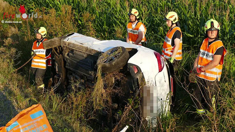 Infolgedessen überschlug sich die junge Lenkerin mit ihrem Fahrzeug und blieb schlussendlich im Straßengraben seitlich liegen. Glücklicherweise wurde die Lenkerin nicht in ihrem Fahrzeug eingeschlossen. Der Rettungsdienst musste die junge Dame mit verletzungen unbestimmten Grades ins Klinikum transportieren.