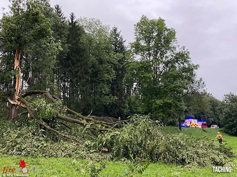 KREIS TRAUNSTEIN (BAYERN): Ein heftiges Unwetter mit Sturmböen und Starkregen hat am späten Samstagnachmittag, 26. August 2023, weite Gebiete im Landkreis Traunstein heimgesucht und zu einem Großeinsatz der Feuerwehren geführt. Nach einer ersten Bilanz waren es mehr als 250 Einsätze, die von den Wehren im Zusammenhang mit dem Unwetter abzuarbeiten waren.